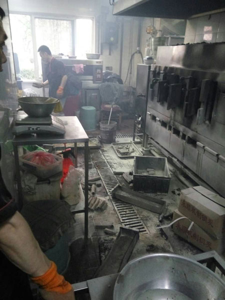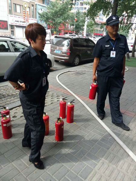 7月29日15時左右,金海物業江畔花園管理部當值保安班長趙丹巡視至57樓時,突然發現樓下飄過陣陣濃煙。當確定這股濃煙是來自57號樓外臨街門市一烤魚店,里面發生火情后,趙丹立即用對講機通知了管理部及49號崗、60號崗的值班保安。隨后,趙丹火速帶領保安楚兆強、張代秋,管理員孫海燕和熱心業主曲師傅,拎著滅火器趕到烤魚店。