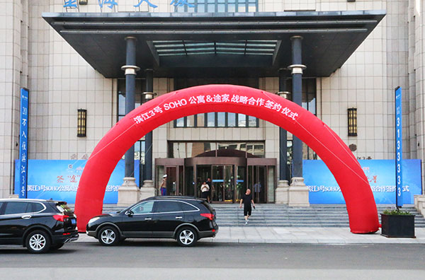 簽約儀式上,金海集團總經理孟國慶和途家遼寧區域總經理劉佳音表達了建立長久合作的良好愿望,并簽訂了戰略合作協議。途家高級業務經理郝安琪在活動現場為大家介紹了途家酒店特色的業主免費交換入住體系,分享了如何讓公寓更加增值,更有保障。最后,金海集團總經理孟總和途家遼寧區域總經理劉總一同上臺,共同啟動了啟動球,標志著金海與途家的合作正式開啟。