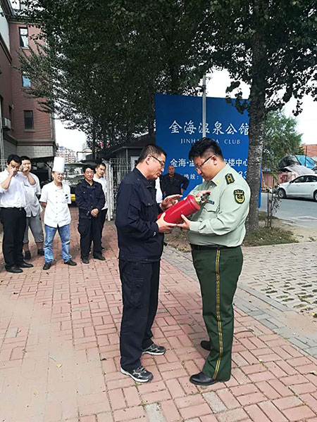 為提高員工整體消防技能及掌握有關消防處置方法,正確處理火災發生的程序,9月27日,金海溫泉公館邀請振安區消防大隊張指導員給溫泉公館,溫泉小鎮物業,溫泉小鎮售樓處三個部門進行安全消防技能培訓。張指導員認真講解了消防栓、滅火器的使用方法,以及安全消防的基礎知識。每一位員工都了解及學會如何正確使用滅火器,以及發生火災時如何采取應急措施,為“十一”期間公館消防安全做好準備工作。