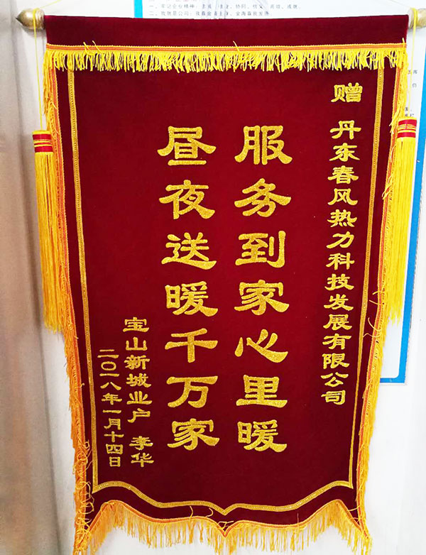 金海熱力公司員工熱情真誠、高效快捷的優秀服務,讓客戶非常感動,特制作一面錦旗親自送到熱力公司,對我公司維修人員的耐心熱情的服務表示感謝。