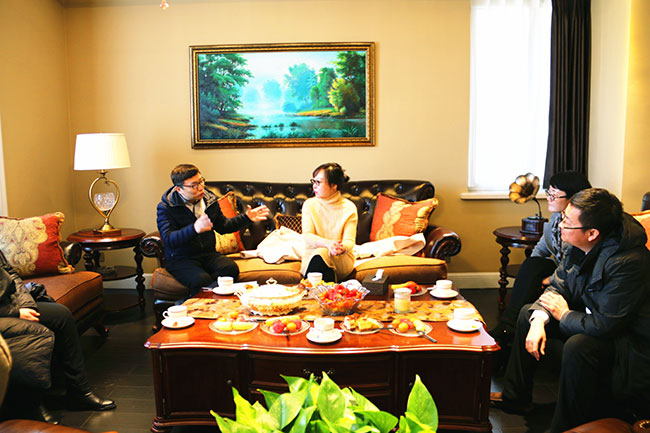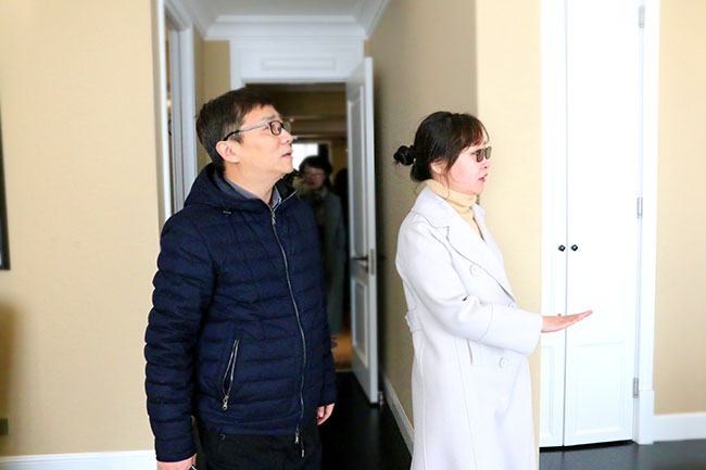 遼寧金海集團總經理莫丹女士代表金海集團董事會熱情接待了王迎行長一行貴賓。莫總向王迎行長一行介紹了金海濱江3號項目的區位資源、規劃特色、景觀優勢、建筑品質、文化建設等,陪同貴賓們參觀了濱江3號園區、樣板間和具有電影院、游泳館、健身房等完善設施的高端會所。