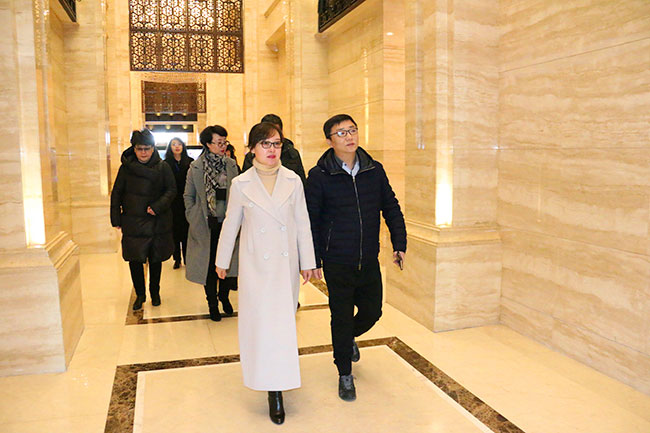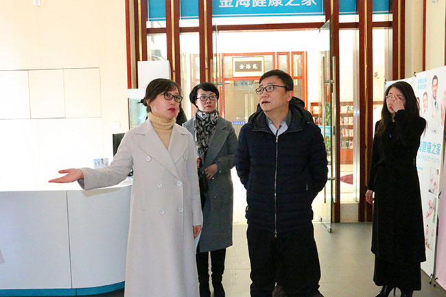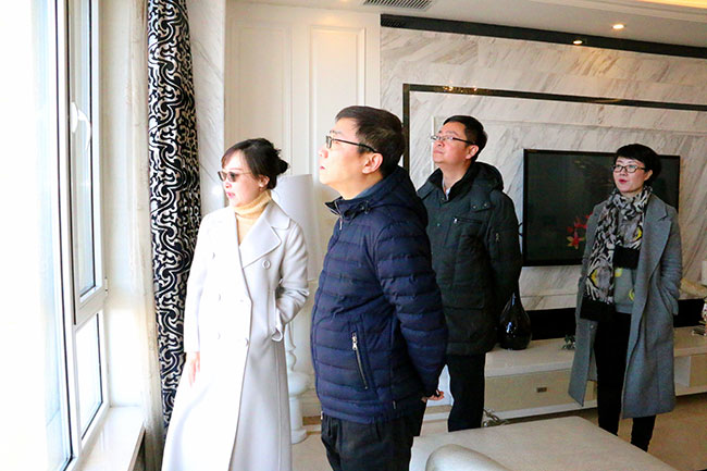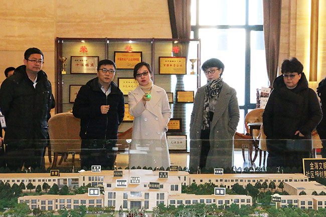 金海集團財務總監于妍妍、營銷副總監杜春臻、物業公司總經理蘇瑩等領導陪同參觀。