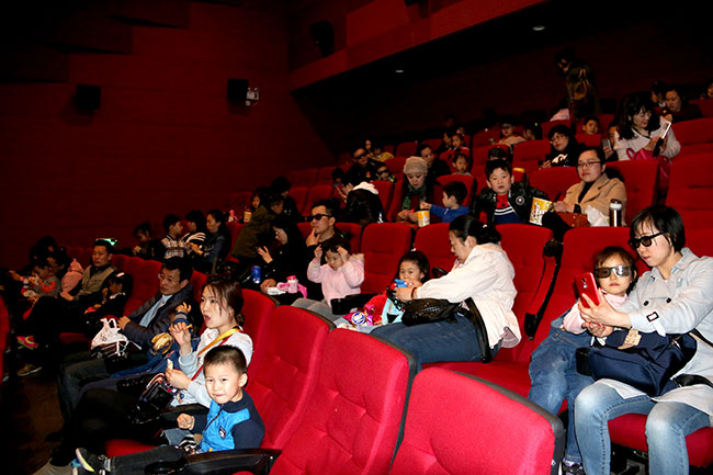 參觀結束后,家長們帶著孩子一起觀看電影,高端影音設備與爆笑可愛的動畫形象吸引著孩子們的目光,家長們和孩子們一起享受親子時光。