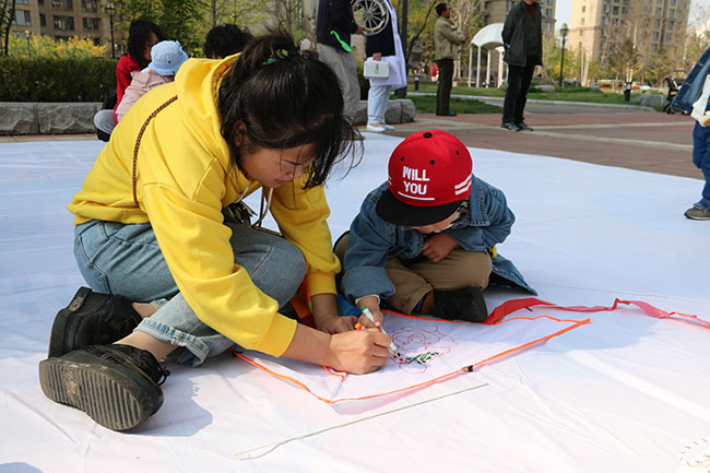 親子游戲結束后,最受孩子和家長們歡迎的制作飛箏活動開始了,孩子們拿到風箏后,迫不及待的準備動手繪畫啦!一眨眼的功夫,一幅幅美輪美奐的風箏呈現在我們的面前,栩栩如生的畫面,讓我們不敢相信這竟是經過孩子們的手從空白演變而成的,孩子們的想象力與創造力真是無窮無盡!