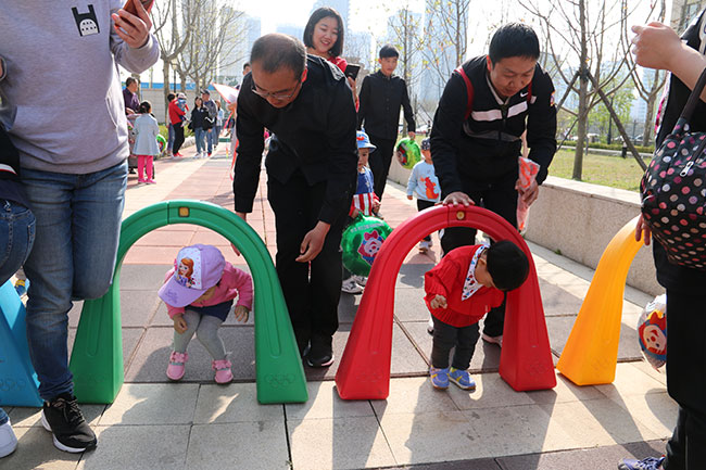 競走比賽、家長跳大繩比賽、踢毽子比賽、寶寶障礙接力賽……運動會期間,家長與小寶寶們共同努力完成每一項親子運動項目,在游戲中收獲親子瞬間、協作力量和親子體驗,比賽場上不時爆發出快樂的笑聲。
