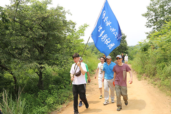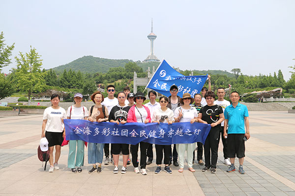 金海工作人員舉著金海多彩社團旗幟,大家跟隨著隊伍,邁著矯健的步伐,一邊欣賞美麗的風景,一邊呼吸大自然的新鮮空氣,享受運動帶來的暢快感受,儼然成為山中一道亮麗的風景。