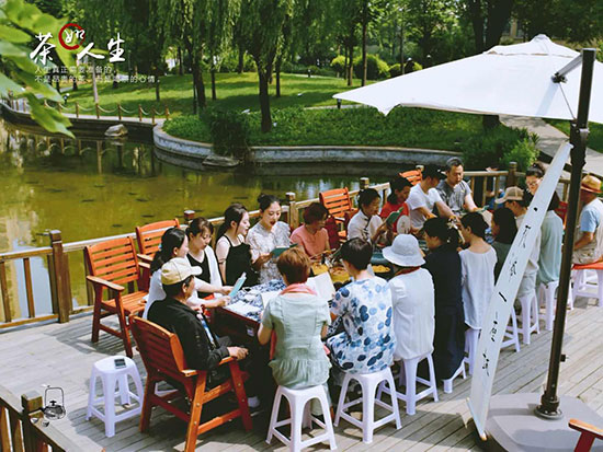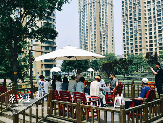 6月24日,物業(yè)公司特邀“一席”茶傳媒會所在濱江3號中心湖觀景臺舉辦茶文化交流會,業(yè)主們積極參與其中。