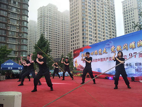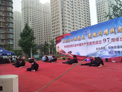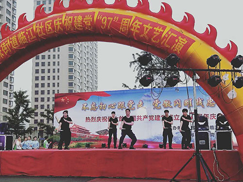 為慶祝偉大的中國共產(chǎn)黨建黨97周年,6月27日晚,在美麗的鴨綠江畔,丹東市臨江社區(qū)聯(lián)合轄區(qū)物業(yè)及居民隆重舉辦“建黨97周年慶典晚會(huì)”,金海物業(yè)應(yīng)邀參加了此次活動(dòng)并在活動(dòng)中獻(xiàn)上精彩的表演。當(dāng)晚,雖然下起了瀝瀝細(xì)雨,但前來觀看的市民卻絡(luò)繹不絕,現(xiàn)場氣氛十分熱烈。演出開始前,濱江3號全民多彩社團(tuán)文藝社的業(yè)主們?yōu)楝F(xiàn)場的所有觀眾表演了一段精彩的藏族舞蹈《心上的羅加》,讓人眼前一亮,贏得了臺下陣陣掌聲。隨之演出拉開大幕,在精彩紛呈的表演中,濱江3號管理部的管家和保安團(tuán)隊(duì)也登臺一展風(fēng)姿,表演了舞蹈《光榮的使命》,臺上的她們舞姿優(yōu)美,英姿颯爽,可謂是亦柔亦剛,給江城的父老相親和外地的游客展現(xiàn)了金海物業(yè)人的多樣風(fēng)采,大家掌聲雷動(dòng),讓人印象深刻。