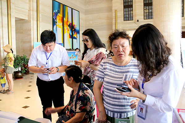 業主們通過工作人員的講解下載利家平臺APP并綁定銀行卡,再利用利家平臺APP現場繳納物業費,憑繳費截圖到物業處開具收據。