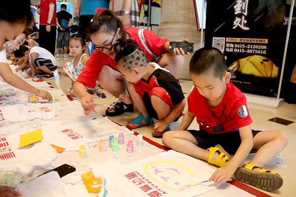 經營中心置業顧問首先為大家分享了濱江3號項目及近期清盤政策。主持人宣布活動流程,參與者以家庭為單位,根據自己的需求用熒光顏料、熒光筆、T恤等材料,隨性裝扮出不一樣的“戰袍”。
