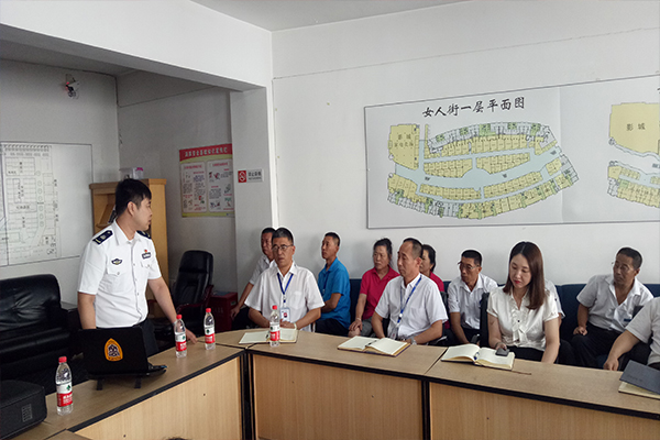 8月27日上午10:00商業公司所有員工在會議室進行商場用電安全檢查以及哈爾濱火災案例分析相關安全培訓。
