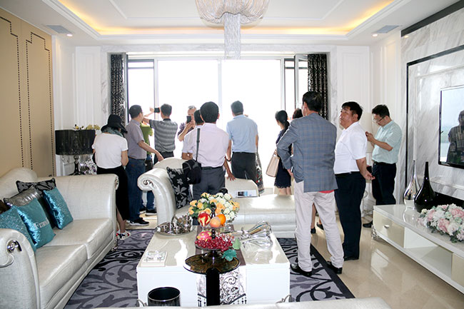 在金海濱江3號,劉總和蘇總分別向浙江政研會一行貴賓介紹了濱江3號項目的區位資源、規劃特色、景觀優勢、建筑品質、文化建設等,陪同貴賓們參觀了濱江3號百米長廊、園區、樣板間和電影院、游泳館、社區食堂、金海熙康體檢中心等配套設施。