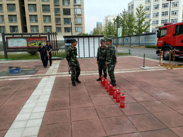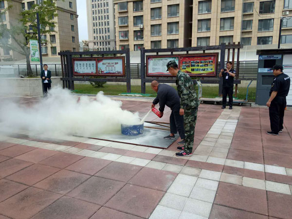 培訓結束后,杜教官帶領大家進行了實地滅火及逃生演習實踐,親手指導業主如何正確使用滅火器滅火,一旦發生火災如何指揮小區業主樓道安全逃生等。