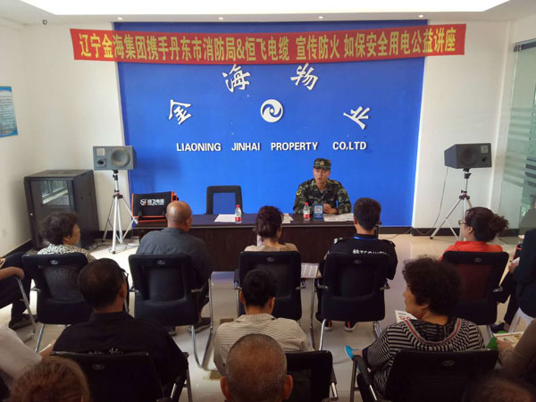 9月15日上午,物業公司攜手丹東市消防局及恒飛電纜在濱江3號物業會議室進行消防、用電安全知識講座,向物業各轄區業主代表普及消防、用電安全等常識。