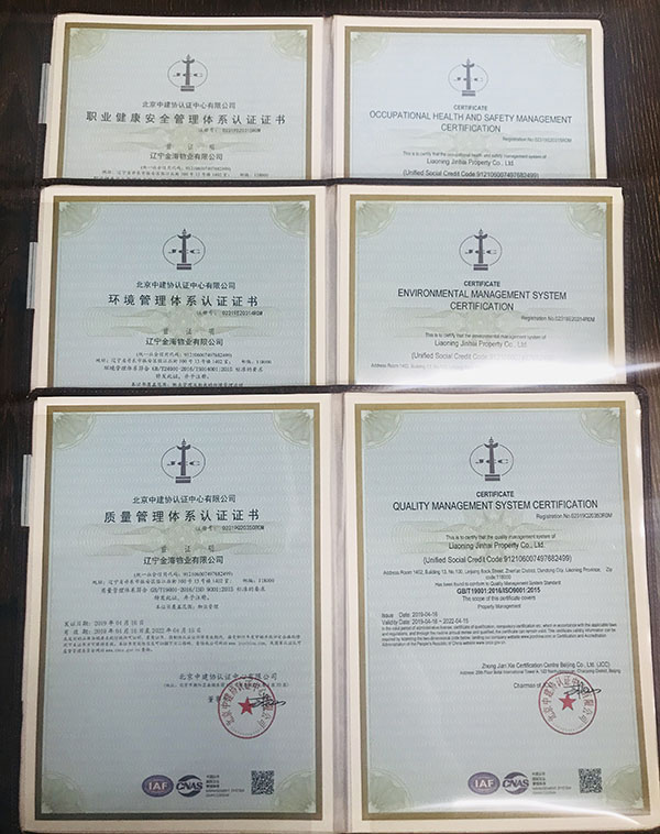 在集團(tuán)各級領(lǐng)導(dǎo)的大力支持下,經(jīng)過物業(yè)全體員工的不懈努力,遼寧金海物業(yè)順利通過中建協(xié)專家審核小組的審核,并于2019年4月20日獲得認(rèn)證公司頒發(fā)的ISO9001質(zhì)量管理體系認(rèn)證證書、ISO14001環(huán)境管理體系認(rèn)證證書和OHSAS18001職業(yè)健康安全管理體系認(rèn)證證書,得到了認(rèn)證公司的充分肯定和認(rèn)可。認(rèn)證的獲得不僅使公司內(nèi)部管理更加市場化,同時也能為公司在市場競爭中獲取優(yōu)勢,助力物業(yè)項目的競投標(biāo)。