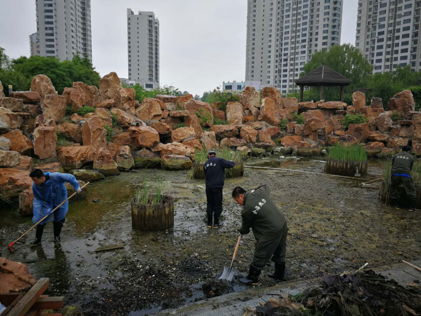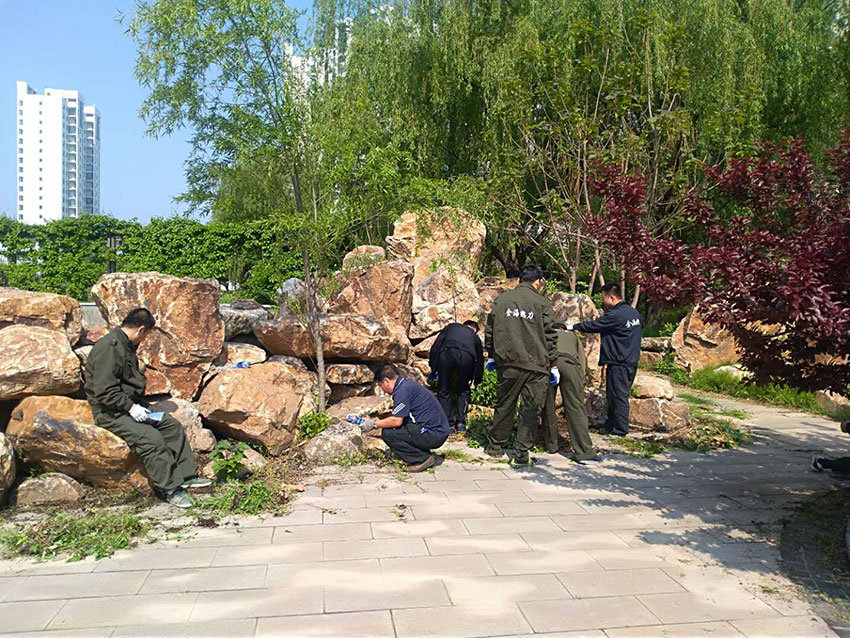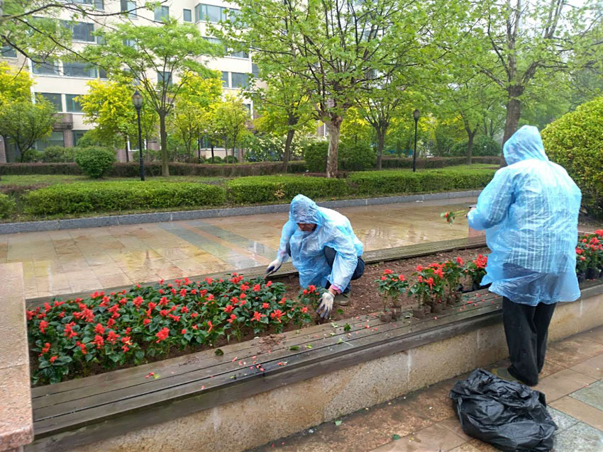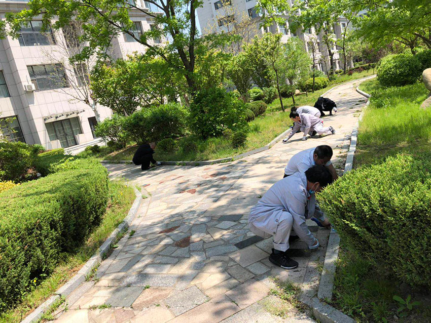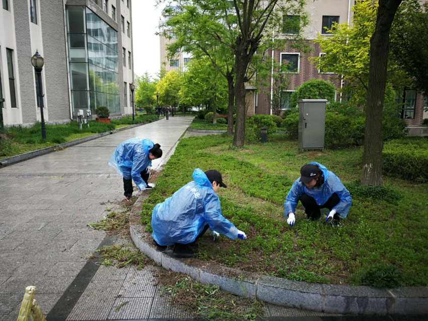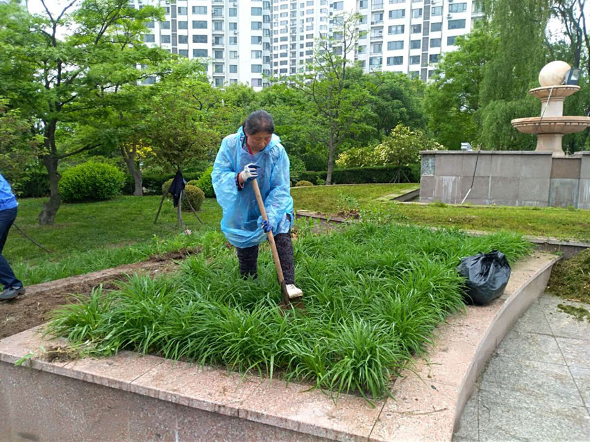 金海員工們劃片分區(qū),各領(lǐng)任務(wù),迅速投入園區(qū)清掃、園林拔草、園林維護(hù)各項(xiàng)緊張勞動當(dāng)中。
