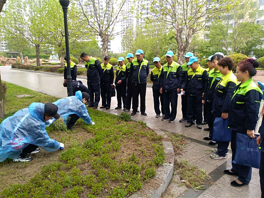原來,金海物業(yè)新近承接了新區(qū)大型公務(wù)員小區(qū)——國門灣新世紀(jì)佳園,他們這是金海員工總動員,利用這個周六、周日全體去參加義務(wù)勞動!