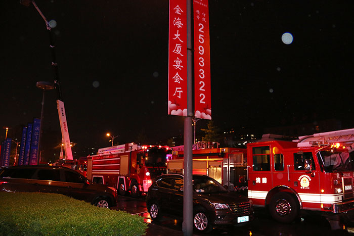 5月26日晚,金海大廈聯(lián)合丹東市消防局救援支隊,在金海大廈舉行了消防救援演練,歷時2個小時。金海大廈保安全程參與與演練,消防局調(diào)用消防救援支隊指揮車、水罐車、空氣壓縮泡沫車、登高救援車、高空消防車、遠程供水車等14臺車輛,消防官兵共45人參加水罐消防車、登高云臺車、應急指揮車12輛滅火作戰(zhàn)車輛。
