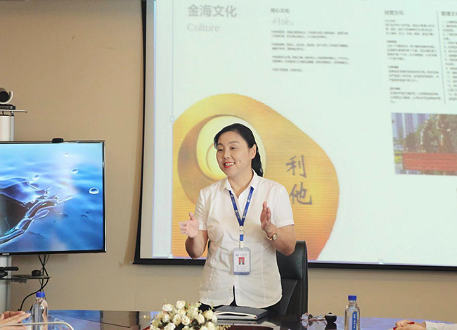 本次培訓大廈邀請了集團人力資源部經理鄒文飛擔任主講。鄒經理從金海集團發展歷史、金海企業文化核心、如何塑造企業形象三個方面入手,重點解讀了“利他”企業文化主旨的內涵,號召大家不斷追求卓越,不斷用心進取,不斷自我修煉,從而實現以一流的服務塑造一流企業形象的愿景。