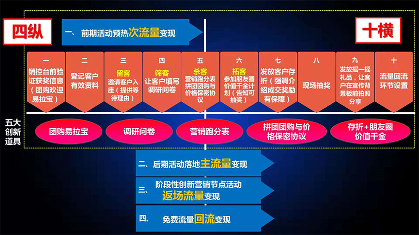 本次課程,由九龍辰品聯(lián)合創(chuàng)始人兼CEO、中國房地產(chǎn)營銷第一人,洪鳴洪院長主講。洪院長在本次課程中舉了三個跨界營銷的案例(娃娃機、健身房、南通五金機電城)詳細解釋如何低成本撬動全渠道聯(lián)盟營銷進行項目導客。以及項目導客之后,案場如何進行留客、篩客、殺客、拓客的流程化步驟,幫助案場更有效的導客和促進成交。