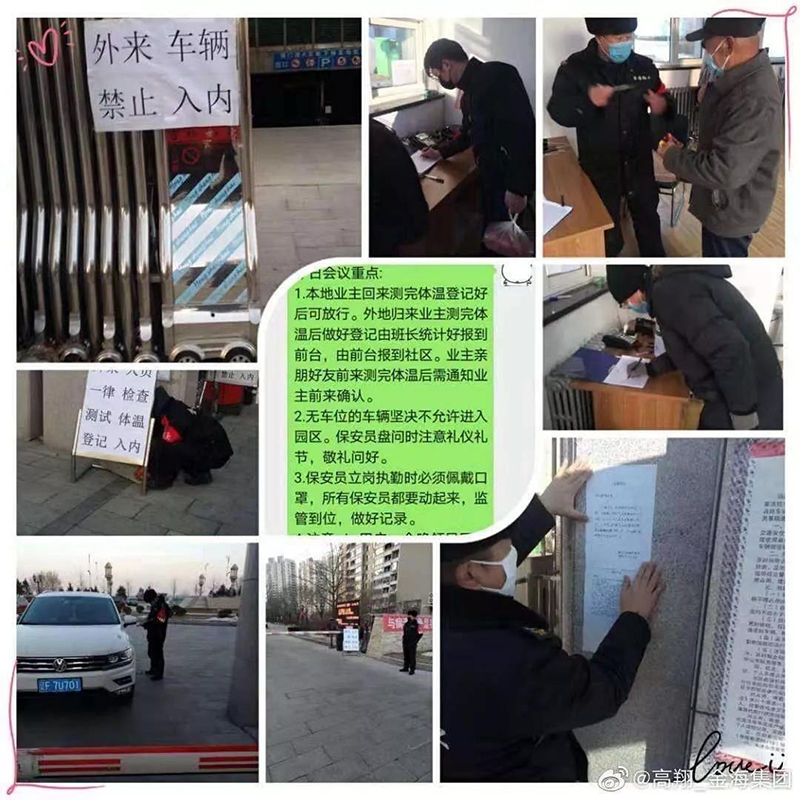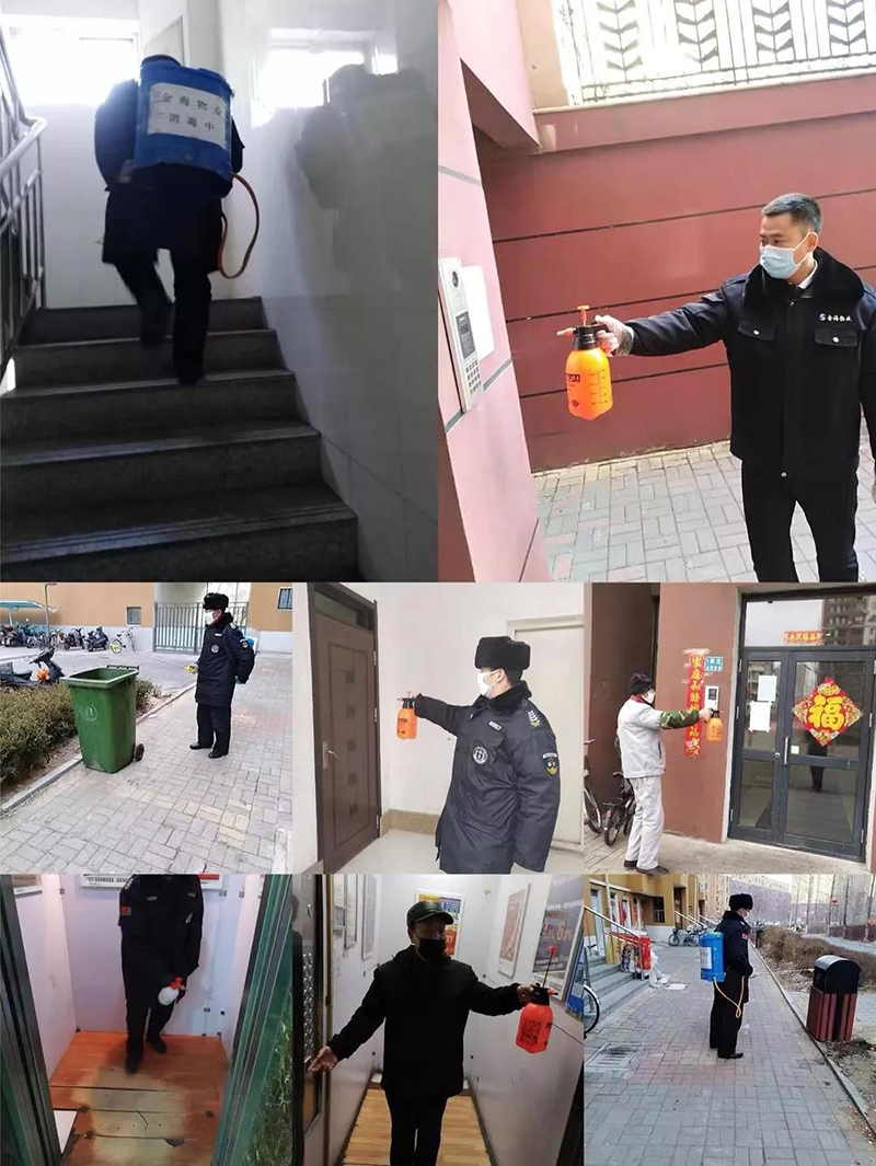 從領(lǐng)導(dǎo)到一線,所有金海物業(yè)管理人員正常上崗,調(diào)度部署,購買發(fā)放消毒防疫物資,貼通知,協(xié)調(diào)解決客戶投訴,第一時間幫助有困難的人,還有做好宣傳動員!