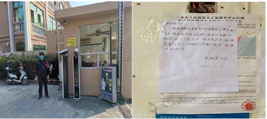 為全力做好疫情防控工作,有效阻斷新型冠狀病毒感染的肺炎疫情傳播途徑,金海物業(yè)始終站在“第一防線上”。保安師傅戴著口罩,對(duì)進(jìn)來(lái)車輛進(jìn)行排查,為了嚴(yán)防疫情,嚴(yán)格把控、掌握進(jìn)出人員信息,小區(qū)目前實(shí)行半封閉式管理,原有的三個(gè)進(jìn)出大門關(guān)閉了兩個(gè),只留了一個(gè)大門可以進(jìn)出,凡是進(jìn)出車輛保安都要對(duì)司機(jī)進(jìn)行體溫檢測(cè)。此外,從1月29日起小區(qū)施行半封閉狀態(tài),除了小區(qū)業(yè)主以外,外來(lái)人員若無(wú)特殊要求一律不允許進(jìn)入。