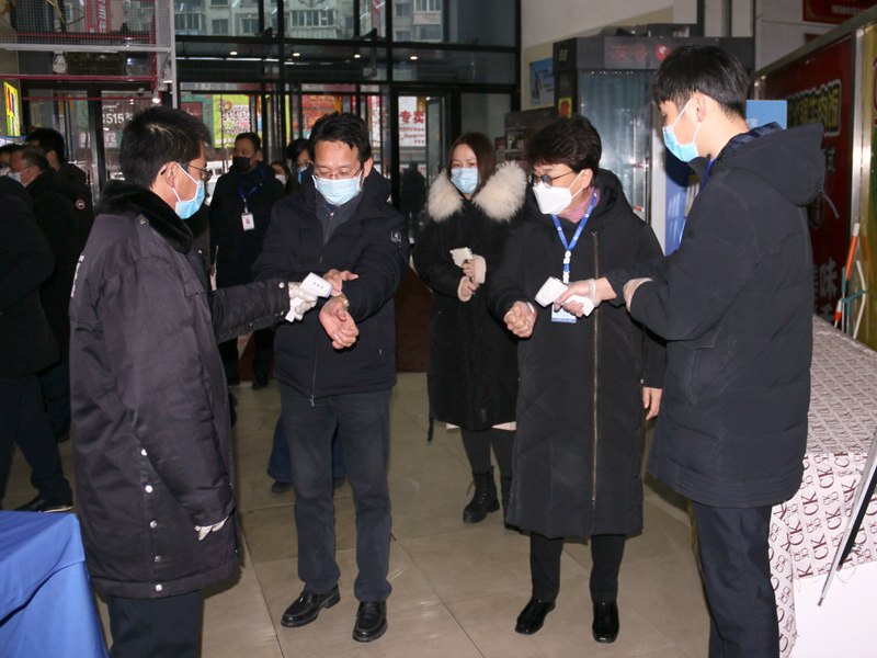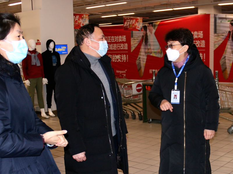 熊興勤副市長、張睿副市長一行深入金海商業廣場華潤萬家購物中心仔細詢問查看和了解情況。在一層華潤購物廣場,檢查詢問消毒設施的配備和使用情況;在華潤萬家超市,分別向超市相關人員細致了解經營情況、客流量情況、線上外賣開展情況等,特別關注和強調了超市空調使用安全問題以及消毒防范措施等;在國美電器,現場對店員就防控疫情問題進行了提問,并對店員所掌握的疫情防控知識和實施情況表示滿意。