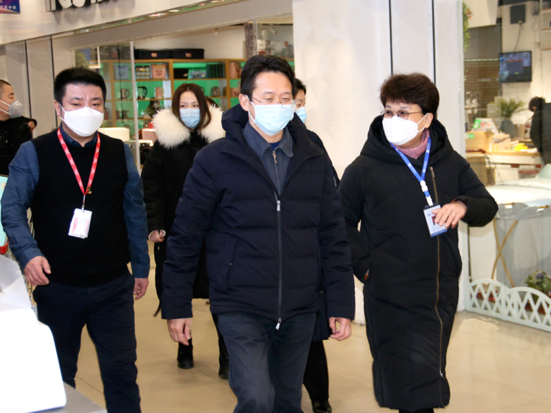 2月21日下午,丹東市委常委、副市長熊興勤和副市長張睿來到金海商業廣場,現場察看了解金海商圈開業情況,檢查強調開業后商場疫情防控工作。元寶區區長譚云鵬、副區長王慧、副區長王淳、區商務局局長梁靜、副局長靳莎等領導一同前來檢查指導工作。金海集團總經理蘇瑩向熊興勤副市長、張睿副市長和各位領導匯報了金海商業廣場開業及疫情防控相關工作開展情況。