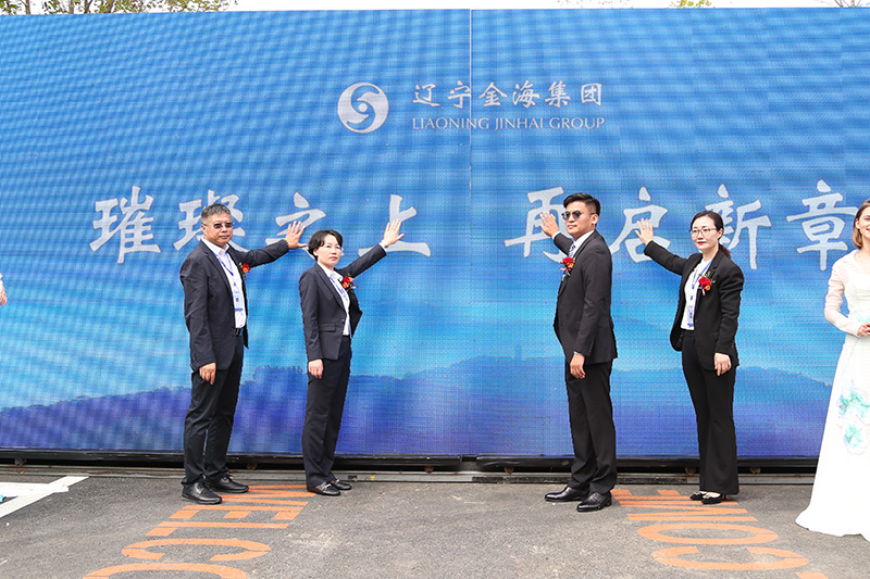 遼寧金海集團副董事長兼總經理賈本鑫、常務副總經理李小琳、副總經理劉中、總會計師于妍妍承載著所有人的美好期待和祝福共同啟動金海·桃源里服務銷售中心!