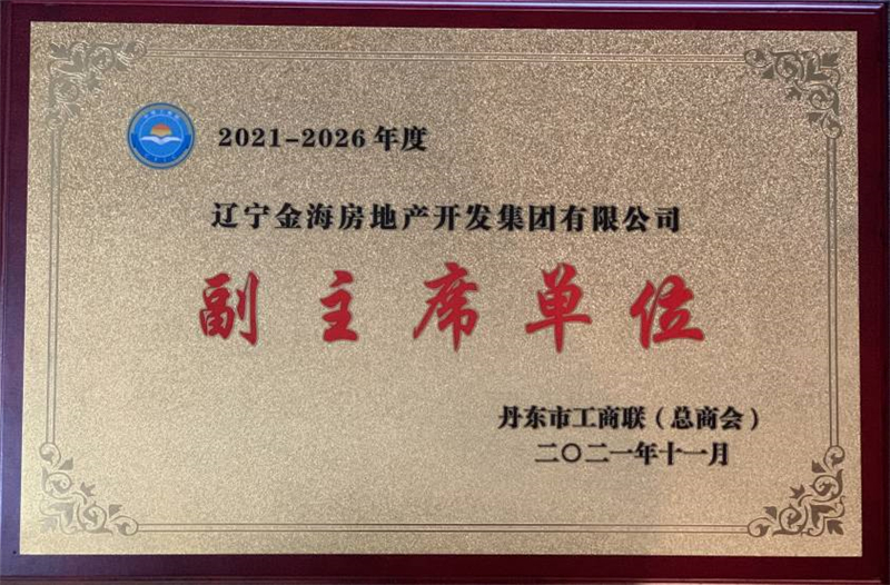 2021年11月,遼寧金海房地產(chǎn)開發(fā)集團有限公司當選丹東市工商聯(lián)(總工會)2021-2026年度副主席單位。
